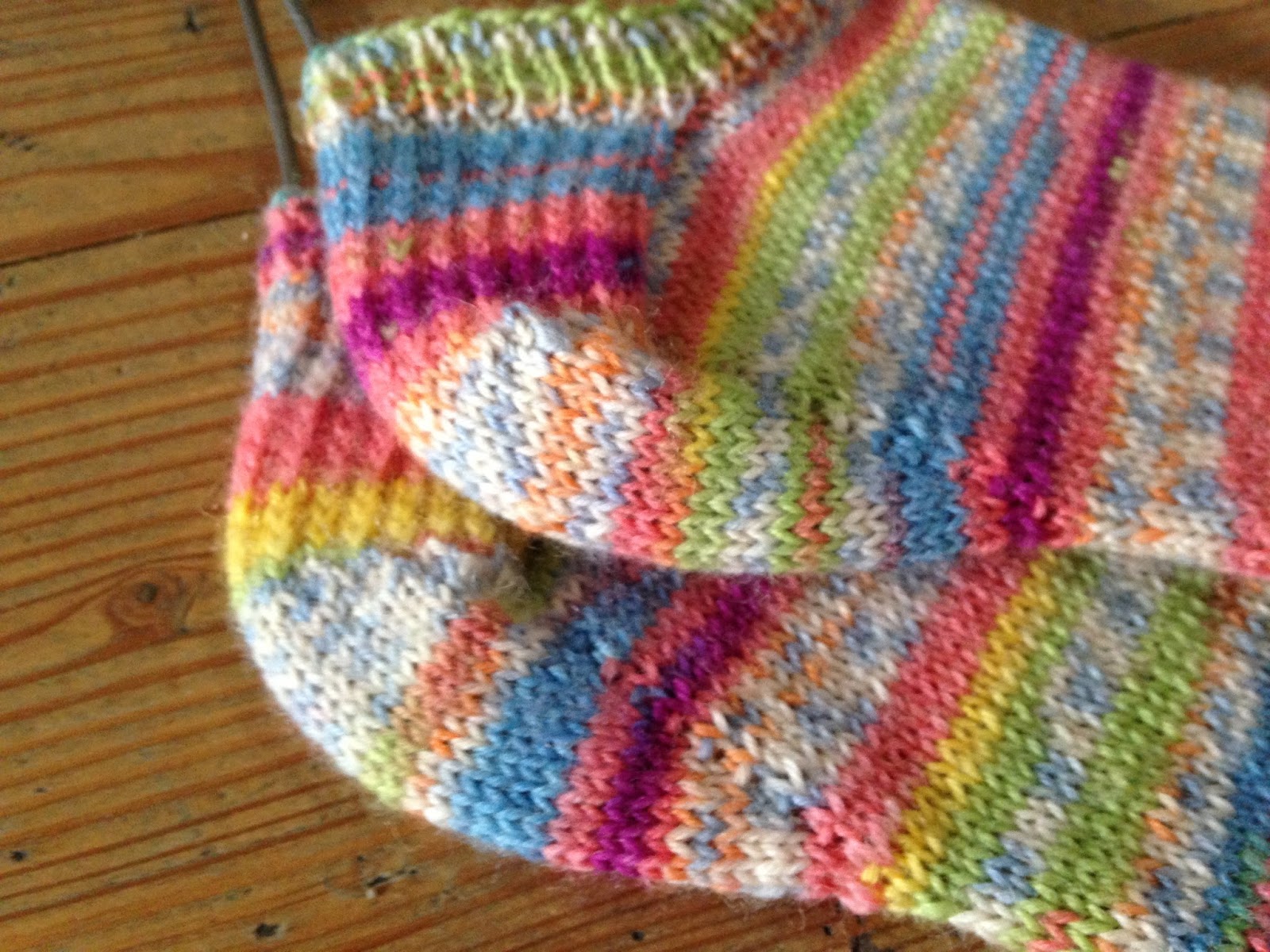 This first pair done is Regia that is the perfect colors for spring! So bright and happy but very warm for short socks. I like the sturdiness of a Regia sock, I don't worry about what shoes I'm wearing and they always look great even after tons of wear.